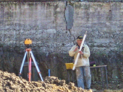 Anyway, over the next few weeks the wall was rebuilt. Fast forward to Friday 23 April 2010: after enquiring from Council on Friday, a day after an attempted pouring on Thursday, I have been told that Council is awaiting "confirmation from his contracted surveyor that the set out is in compliance with the relevant approvals"....and that the levels are correct.